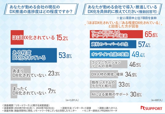 DX化が進んでいる環境で働いている方が約7割!リモートワークが特に重視されている