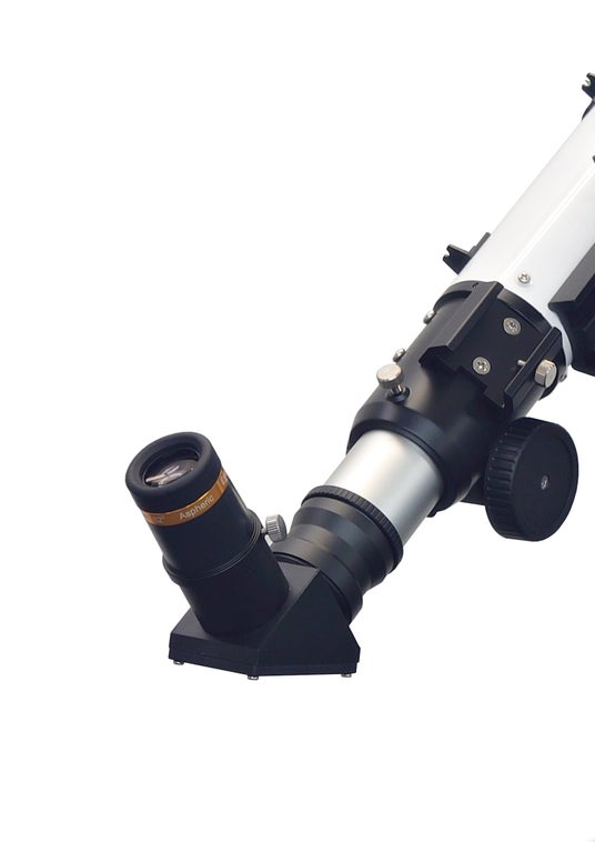 焦点距離10mmと23mmの接眼レンズ(アイピース)が各1本、さらに天頂ミラーが付属します。アイピースは、のぞきやすさに配慮して大きな見口レンズを採用。望遠鏡の使用に慣れていない方でも、快適に観察ができるよう設計されています。また、見かけ視界が広い広視野タイプですので、対象の天体が見つけやすいのも特長です。倍率は、付属の10mmのアイピースで54倍、23mmアイピースで23倍です。天頂ミラーは、天頂付近の高度が高い位置の天体を観測する際に便利です。覗き込む姿勢が楽になるため、快適に観測していただけます。