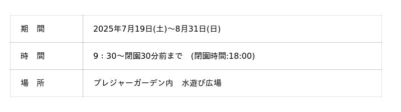 水遊び広場のほかにも、親子で楽しめる“夏あそび”が盛りだくさん