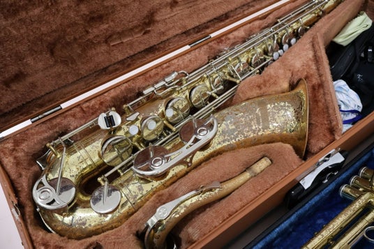 管の割れ目や管内のサビ、サックスの全タンポ交換が必要な楽器も。バランス調整は、数十年かけていないのも多数存在します。