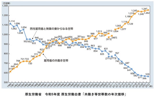 共働き世帯は、片働き世帯の約2倍となっている。