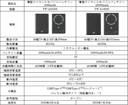 アイリスオーヤマ株式会社(本社:宮城県仙台市、代表取締役社長:大山 晃弘)は、業界最薄・最軽量クラス(※1)で持ち運びが容易な「薄型ワイヤレスモバイルバッテリー10000mAh」を、2025年7月30日よりインターネットサイトや全国の家電量販店などで順次発売します(※2)。