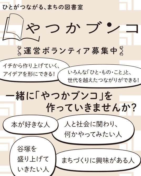 利用者としてだけではなく、運営に携わってみたい!地域で活躍できる場所を探している!ボランティア自体に興味があるがなかなか踏み出せずにいた!という方はぜひ一度やつかブンコに遊びに来てください。