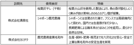 <訪問先・使用食材一覧>