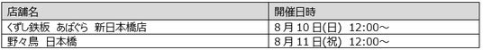 <実施予定店舗・日時>