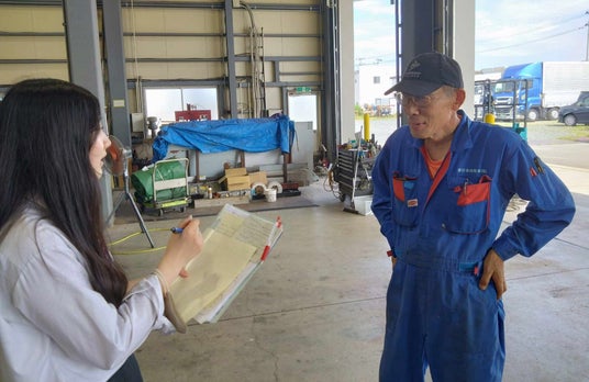 昨年の様子:自動車整備・販売会社で社員にインタビュー