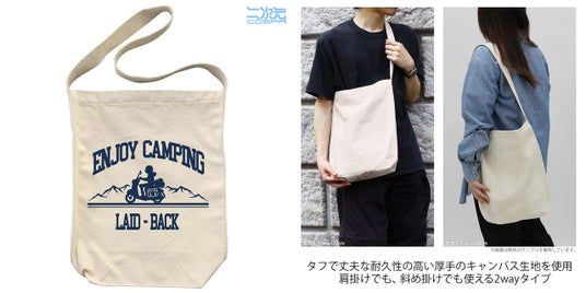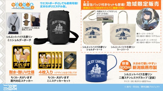 『ゆるキャン△ SEASON3』 限定缶バッジ付き 「ショルダートート」「ラージトート」各セットをはじめ、 シルエットバイク志摩リン「ミニショルダーポーチ」など新グッズが二次元コスパから続々登場です。