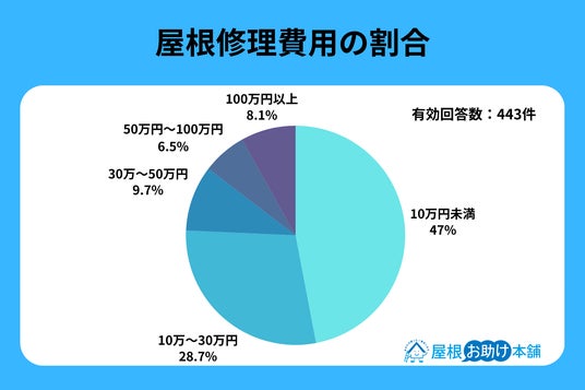 屋根修理費用に関して約半数が「10万円未満」、一方で100万円を超える工事も約1割