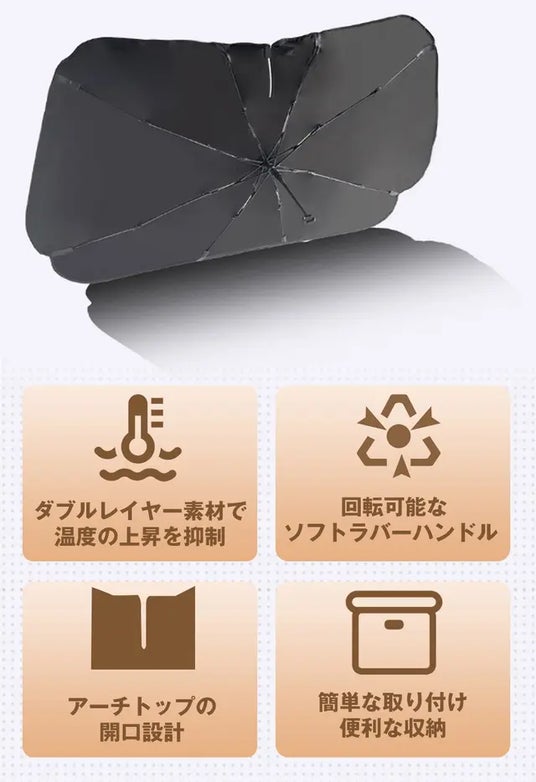 このサンシェードはユニークなデザインと全方位回転機能で、愛車をしっかり保護します。