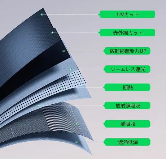 この素材は優れた遮光性能を持ち、強い日差しを遮断して車内の温度上昇を抑制します。高温や紫外線から内装を守り、快適に過ごせます。