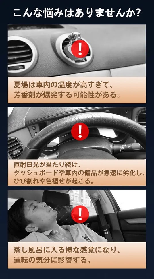 夏季には車内の温度が急速に上昇し、脱水の原因にもなります。特に日中はサンシェードの使用が非常に重要です。