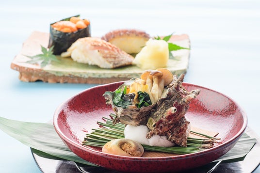 造 里:本鮪 甘鯛昆布〆 生雲丹 桂一式 あしらい 山葵