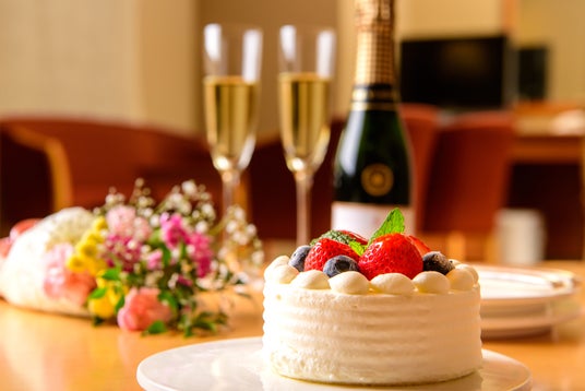 スパークリングとケーキでお祝い♪/朝食付