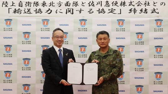 SGホールディングスグループの佐川急便株式会社(本社:京都市南区、代表取締役社長:笹森 公彰、以下「佐川急便」)と、陸上自衛隊東北方面隊(総監部:仙台市宮城野区、方面総監:牛嶋 築、以下「東北方面隊」)は、7月23日に「輸送協力に関する協定」を締結し、同日、仙台駐屯地にて締結式を行いました。