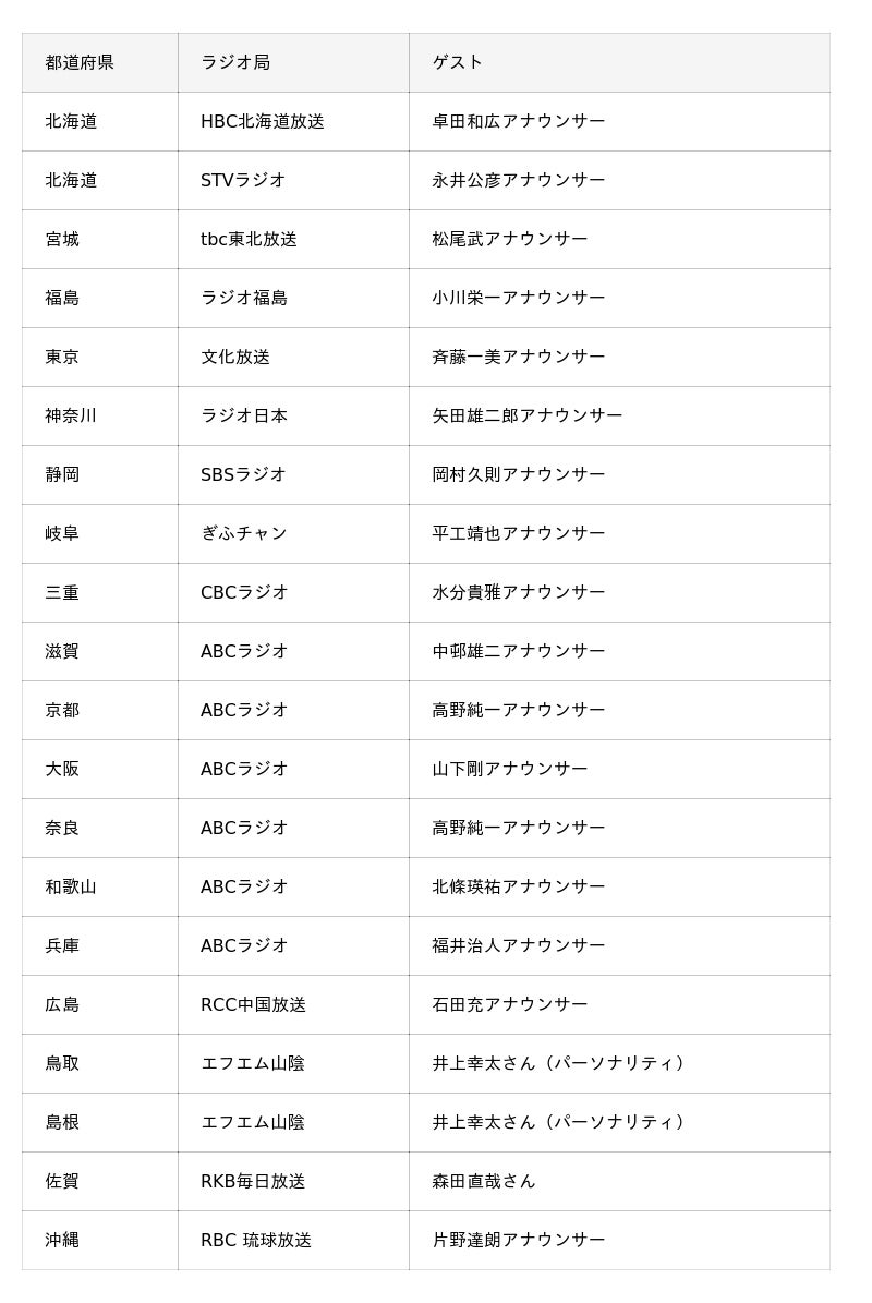 AM・FM、系列を問わず、高校野球に携わるラジオ局が全国から14局参加。計20都道府県のベストゲームを配信予定です。今回参加頂いたラジオ局、ゲストは以下の通り。