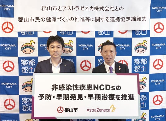 アストラゼネカ株式会社(本社:大阪市北区、代表取締役社長:堀井 貴史、以下、アストラゼネカ)と福島県郡山市(市長:椎根 健雄、以下、郡山市)は、この度「郡山市民の健康づくりの推進等に関する連携協定」を締結しました。本協定のもと、郡山市が掲げる「すべての市民が健やかで心豊かに生きいきと暮らせる持続可能なまち」の実現に向け、非感染性疾患(NCDs)の発症予防及び早期発見・早期治療の推進による健康寿命の延伸に取り組んでまいります。