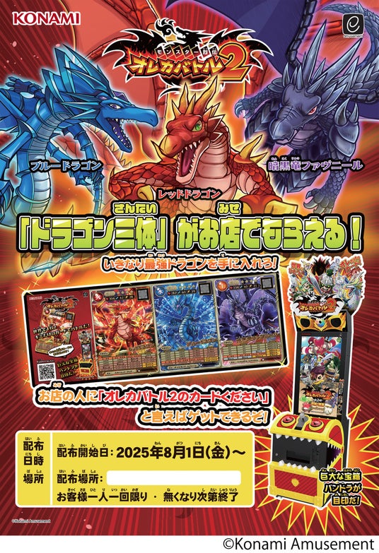 株式会社コナミアミューズメントは、アミューズメント施設向けビデオカードゲーム『モンスター烈伝 オレカバトル2(モンスターレツデン オレカバトルツー)』にて『夏も「オレカ」がいっぱい!』と題し、夏休みシーズンに向けた企画内容をお知らせします。