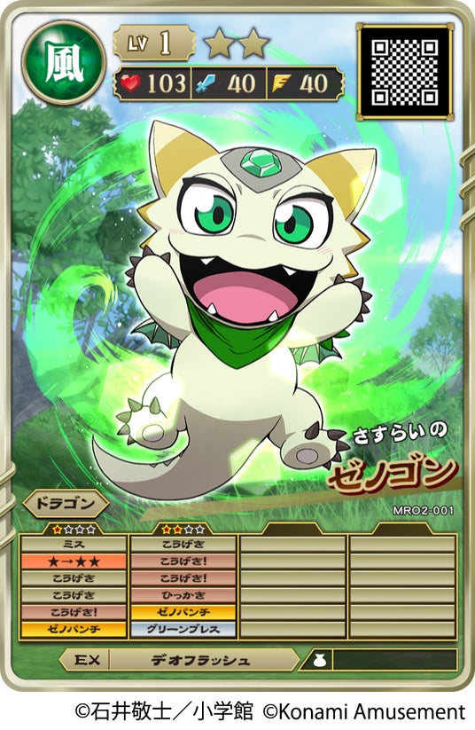 バトル前にこのカードをゲーム機にスキャンすると、まんがに登場する「ゼノゴン」と同じ見た目の「ゼノゴン」が召喚されます。