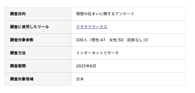 理想の住まいに関する独自アンケートの概要