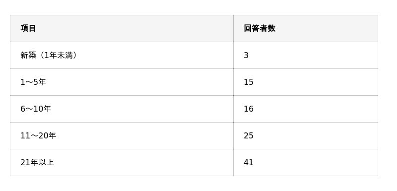 今のお住まいの築年数はどのくらいですか?