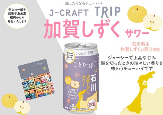 そんな石川県の自慢の逸品が「J-CRAFT TRIP」からサワーになりました。7月16日(火)より全国のコンビニエンスストア・北陸をはじめとする一部エリアにて先行発売開始、9月10日(火)より全国発売いたします。