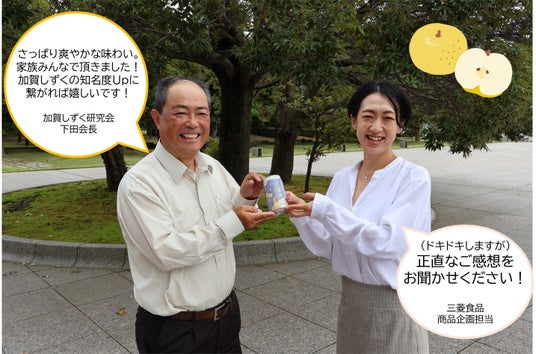 また、事前にご試飲をいただいた加賀しずく研究会 下田会長からは「缶を開けて一口目、さっぱり爽やかな味わいが楽しめた。家族みんなで頂きました。加賀しずくサワーをきっかけに広く全国で加賀しずくの知名度が高まると嬉しいです。」とのお声を頂きました。今年の「加賀しずく」の生産も順調に進行、8月下旬頃出荷開始予定との事。9月中旬頃迄と限られた期間しか食べられない稀少な梨、是非「加賀しずくサワー」をきっかけに青果そのものも手に取って味わっていただきたいです。