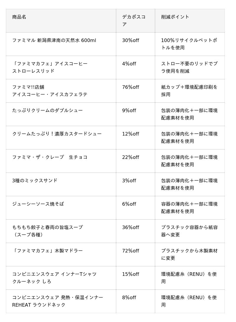 そのため、レジ袋の利用を選ぶように、購入する商品を「デカボスコア」対象品から選ぶことで、CO2削減に貢献するというアクションがファミリーマートで行えるようになりました。