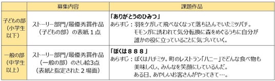本コンクールは【二段階形式】で、まずストーリー部門を募集し、その最優秀作品をもとに、イラスト(さし絵)部門の募集を行います。ストーリー・イラストの両部門で最優秀賞に選ばれた作品は書籍化され、「みつばち文庫」(※)として全国の小学校へ寄贈されます。