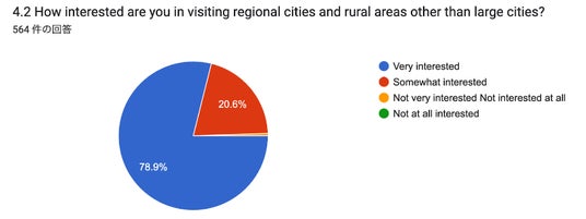 大都市以外の地方都市や農村部への訪問にどの程度興味がありますか?(回答者564名)
