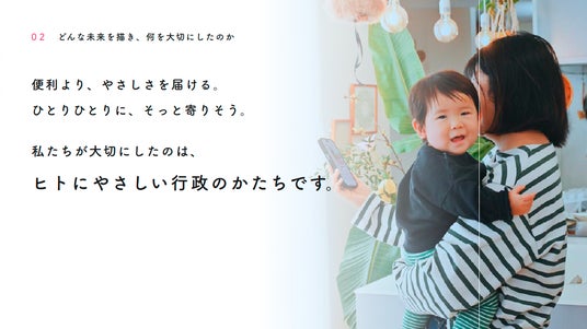 昨年度からは「子育てに、余白を」をテーマに、妊娠期から小学校入学までの“はじめの100か月”に着目し、子育て世帯が直面する行政手続きの煩雑さを解消し、やさしい行政サービスを目指した子育て支援のオンライン化に挑んでいます。