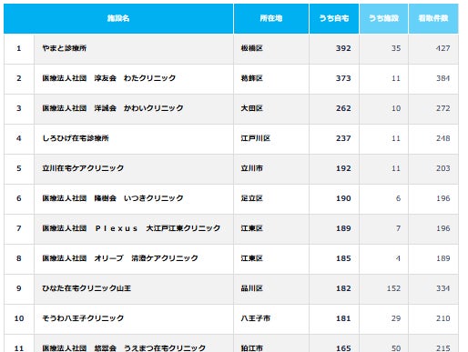 在宅医療の総合情報サイト「おうちde医療」(https://zaita9iryou.com/)は、2025年7月28日、「在宅看取り件数ランキング 居宅編」を新たに公開しました。