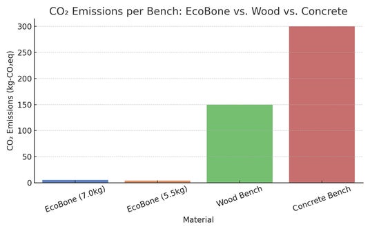 LCA(ライフサイクルアセスメント)によると、従来の廃プラベンチと比較しても、本技術を用いた再生建材は最大80%のCO2削減効果を持ちます。また、「廃棄を回避するだけでなく、インフラとして再利用できる」という点が高く評価されています。