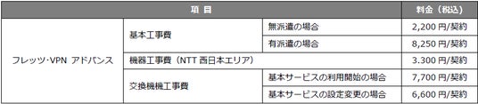 ※2 初期工事費割引はフレッツ・VPN アドバンスの工事費が対象であり、本金額は有派遣の場合の工事費、機器工事費、基本サービスの利用開始の場合の交換機等工事費の合計の金額です。