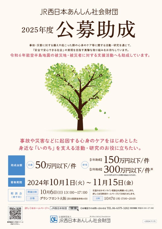 JR西日本あんしん社会財団は、「安全で安心できる社会」の実現に向け心身のケア、