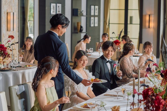 ウエディングのプロフェッショナルチームによって、ご希望に寄り添いおふたりらしい結婚式をご提案し、結婚式当日は人生最良の日にふさわしい洗練されたサービスを提供します。