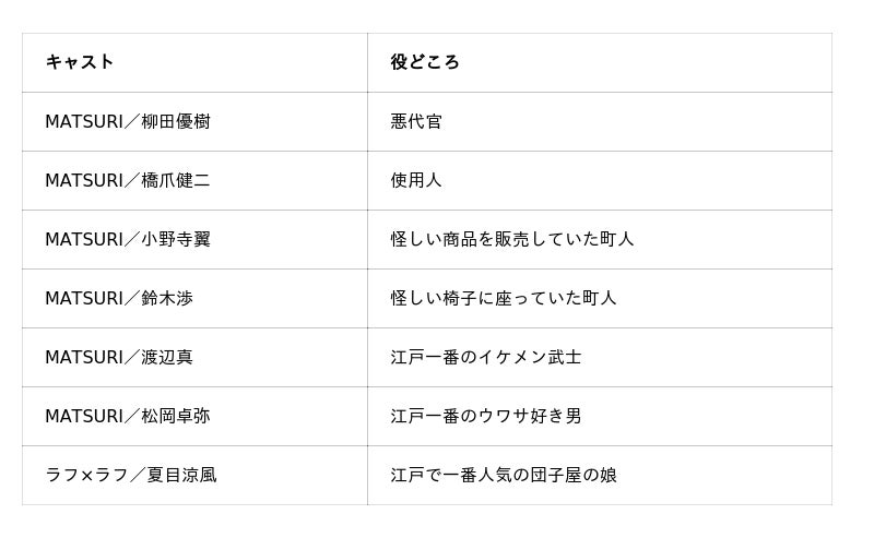 ~ 秋元康プロデュース『MATSURI』、ラフ×ラフ・夏目涼風(佐久間宣行 総合プロデュース)がレギュラー出演。江戸時代劇コントで現代アイテムを紹介/毎週土曜あさ6:30放送(※敬称略) ~