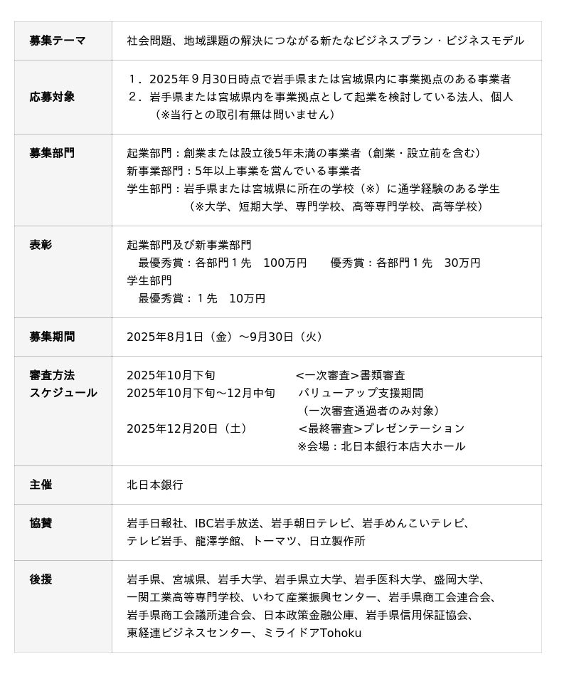 株式会社北日本銀行(頭取:石塚恭路)は、岩手県及び宮城県内の事業者等を対象とした「第5回ニュービジネスコンテスト きたぎん Business Pitch 2025」の応募受付を開始いたしました。