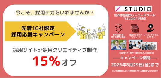 ノーコードツール「STUDIO」を用いた採用サイト制作を通常価格より15%オフでお見積り