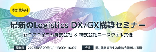 株式会社ニーズウェル(本社:東京都千代田区、代表取締役社長 船津浩三)は、2024年8月29日(木)13時より、新エフエイコム株式会社(本社:栃木県小山市、代表取締役社長:大矢英貴、以下「新エフエイコム」)と共催し、無料セミナー「最新のLogistics DX/GX構築セミナー」を開催しますのでお知らせいたします。