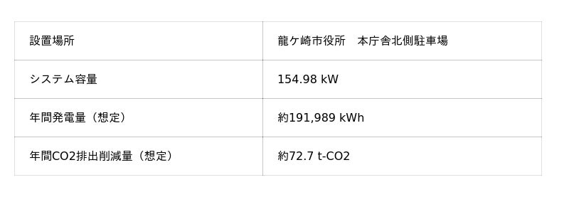 株式会社ハウスプロデュース(本社:大阪市北区)は、茨城県の龍ケ崎市役所にて、PPA方式のカーポート型太陽光発電設備の設計・施工を担当し、2025年7月1日に稼働を開始しました。
