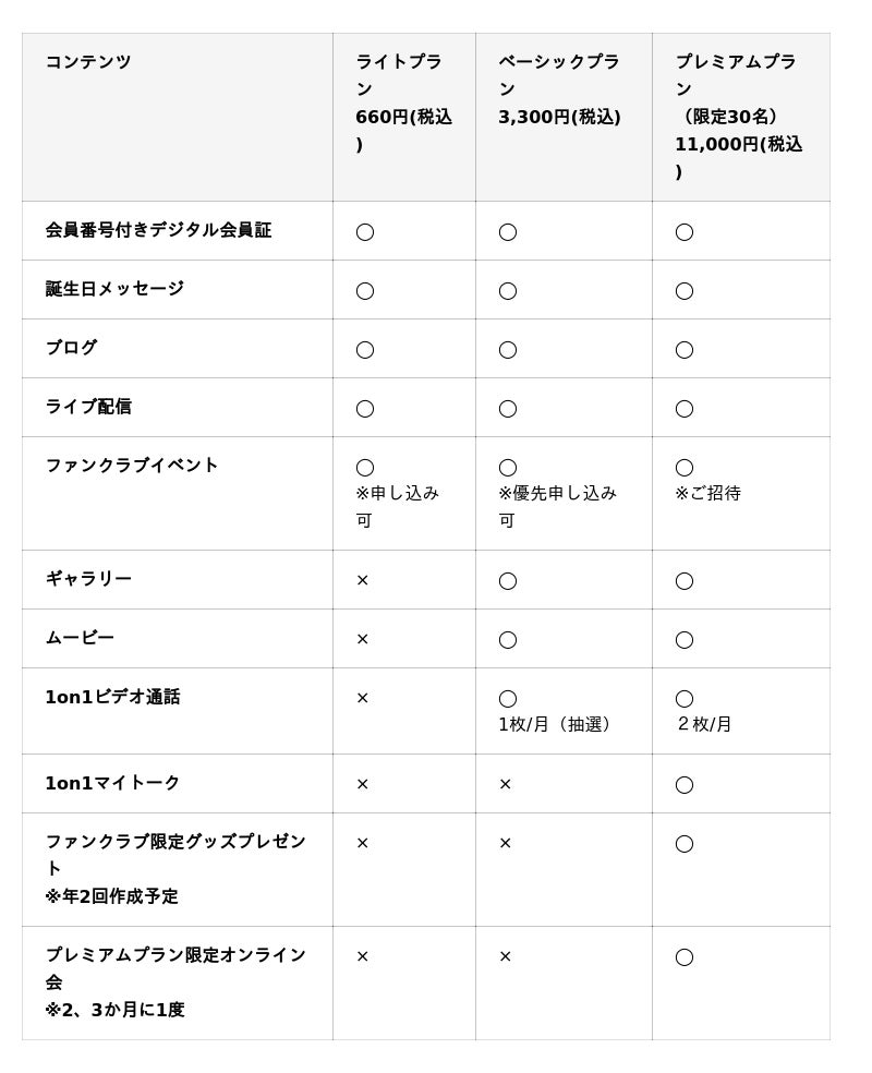 ※プレミアムプランはご招待、ベーシックプランは優先申込み可、ライトプランは申込み可
