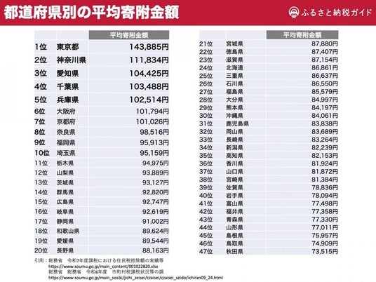 ふるさと納税利用者の平均寄附金額は日本全体では10万5,074円でした。