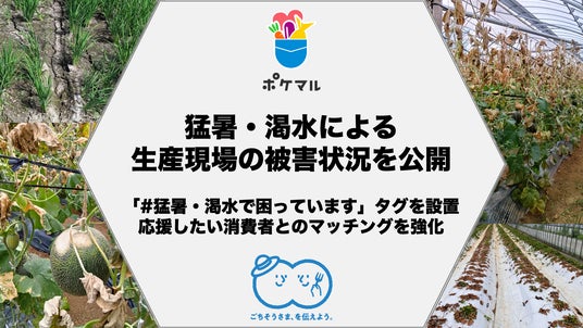 全国の農家や漁師などの生産者と消費者をつなぐ国内最大級の産直アプリ「ポケットマルシェ(ポケマル)」を運営する株式会社雨風太陽(本社:岩手県花巻市、代表取締役社長:高橋 博之、証券コード:5616、以下「当社」)は、2025年6月以降の記録的な高温や少雨を受けて、ポケマル生産者を対象に、生育状況に関するアンケート調査を実施しました。その結果、多くの生産者から作物の生育不良を訴える声が寄せられ、収穫量が例年の3分の1程度にとどまったという回答も複数見られました。こうした現状を踏まえ、「#猛暑・渇水で困っています」タグを新たに設け、応援の気持ちを持つ消費者とのマッチングを強化します。