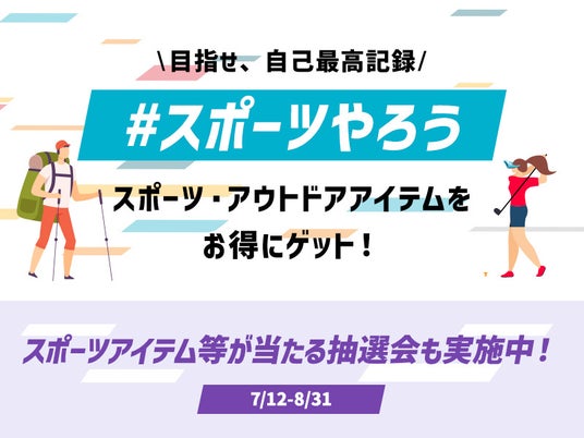 酒々井プレミアム・アウトレットがこの夏はじめたいスポーツ、やってみたかったアウトドアアクティビティなどのチャレンジをお手伝い!スポーツ&アウトドア取り扱い対象店舗で「スポーツはじめます!」と宣言すると、店舗スタッフが商品選びをサポートします。