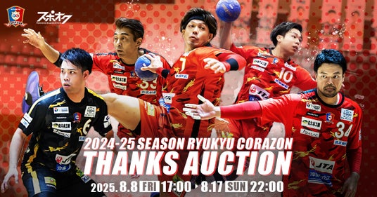 株式会社モバオク(本社:東京都渋谷区、代表取締役社長:小一原 宏樹、以下モバオク)がエンゲート株式会社(本社:東京都中央区、代表取締役:城戸 幸一郎、以下エンゲート)と業務提携し提供するスポーツチーム公式オークションサービス「スポオク」にて、日本ハンドボールリーグ『リーグH』所属の琉球コラソンが『2024-25シーズン 琉球コラソンサンクスオークション』を2025年8月8日(金)から開始します。