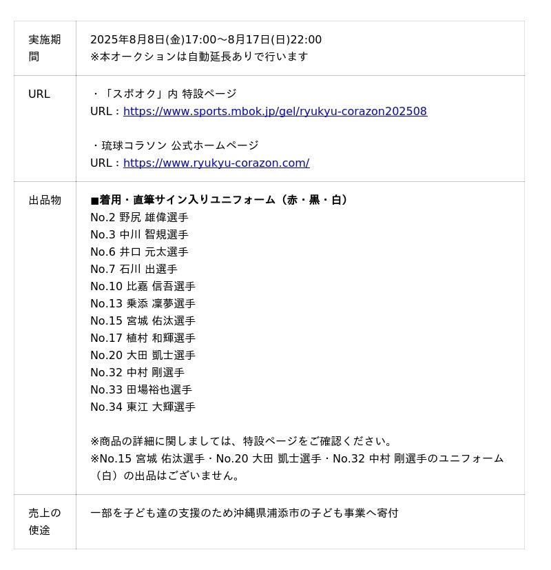 【2024-25シーズン 琉球コラソンサンクスオークション 概要】