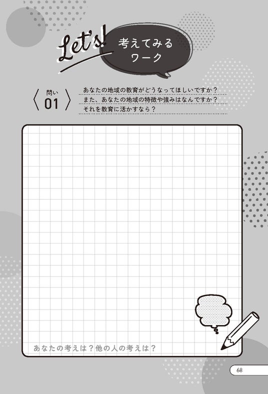 発表の合間にある対話の時間「わっかトーク」を本の中に再現し、教育に関する「問い」のページが設けられているので、一人で本を読みながら、教育対話に参加することができます。