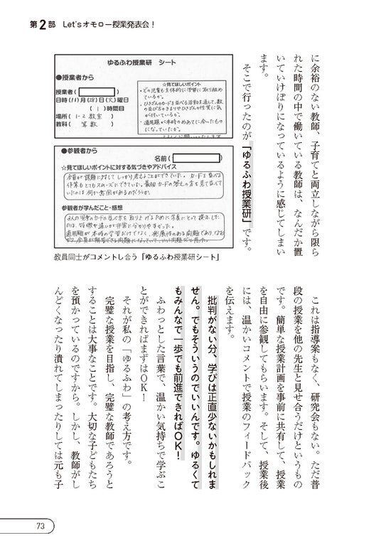 さらに、巻末には「オモロー授業発表会」に参加したときに使えるメモ&寄せ書きのページ「オモロージャーナル」が付いており、お持ちいただくことで、実際の発表会でも役立つ内容となっています。