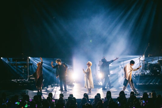 第二章開幕までの葛藤、迷い、躊躇……。5人はすべてのネガティブな感情を解き放つようなエネルギッシュなパフォーマンスを繰り広げ、観客も感情を爆発させ、声を張り上げ、場内が興奮のるつぼと化していく。ラストのサビ前では、イントロのピアノの旋律をなぞった♪ラララ♪というコーラスを大合唱して会場がひとつに。ボルテージが最高潮に達したところで、この日の演奏は終了した。