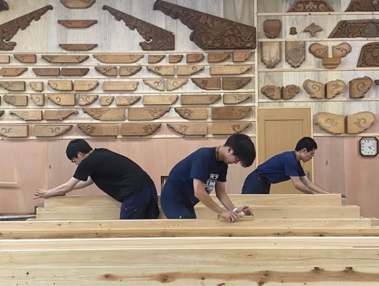 この技術を未来へつなぐため、当社は2021年に若手職人育成のための「匠育成塾」を開設しました。20歳以下の塾生を対象に、現役の棟梁が講師となり、約6か月間にわたり実技と講義を実施。卒塾後は、各棟梁のもとで弟子入りし、実践を通じて技を深めていきます。 木組み・墨付け・道具の扱いといった基礎を体系的に学べる仕組みにより、塾生の理解と定着率の向上が実感されています。私たちは、日本建築の魂ともいえるこの技術を、これからも世界へ発信し続けてまいります。